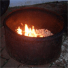 sehr einfachen Ofen, eine alte Öltonne, deren Boden ein Rost
