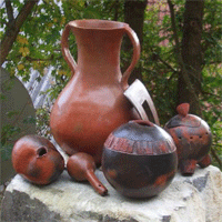 Brennofen und einen Gasbrenner. die vorher rohgebrannten Stücke